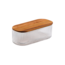 Bavary Glass Storage Container with Acacia Lid | 21.5cm | Oval Glass Jar with Wooden Cover