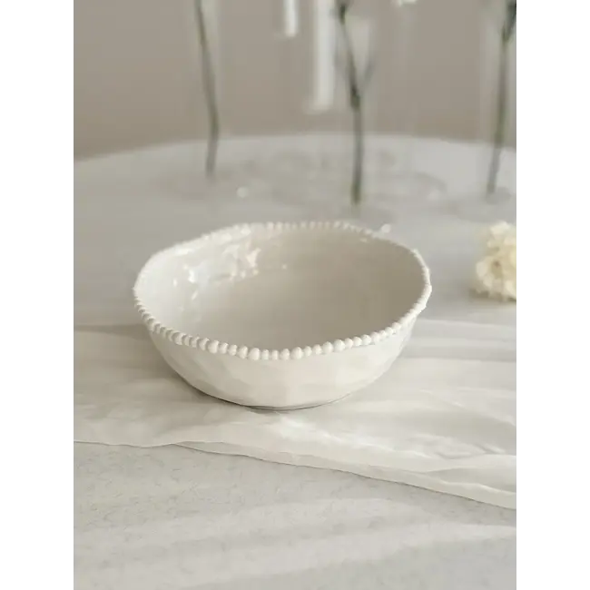 De Almina Pearly Saladeschaal is een elegante en veelzijdige serveerschaal die perfect is voor het presenteren van salades, fruit, pasta’s en andere gerechten. Het verfijnde parelachtige design geeft deze glazen schaal een luxe uitstraling en maakt elke tafelsetting stijlvol en uitnodigend. Ideaal voor dagelijks gebruik en speciale gelegenheden.