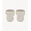 Deze set van twee mokken is vervaardigd uit hoogwaardig keramiek met een matte beige afwerking en unieke organische vormen. De mokken zijn geschikt voor dagelijks gebruik en vaatwasserbestendig – een stijlvolle aanvulling op je servieskast.